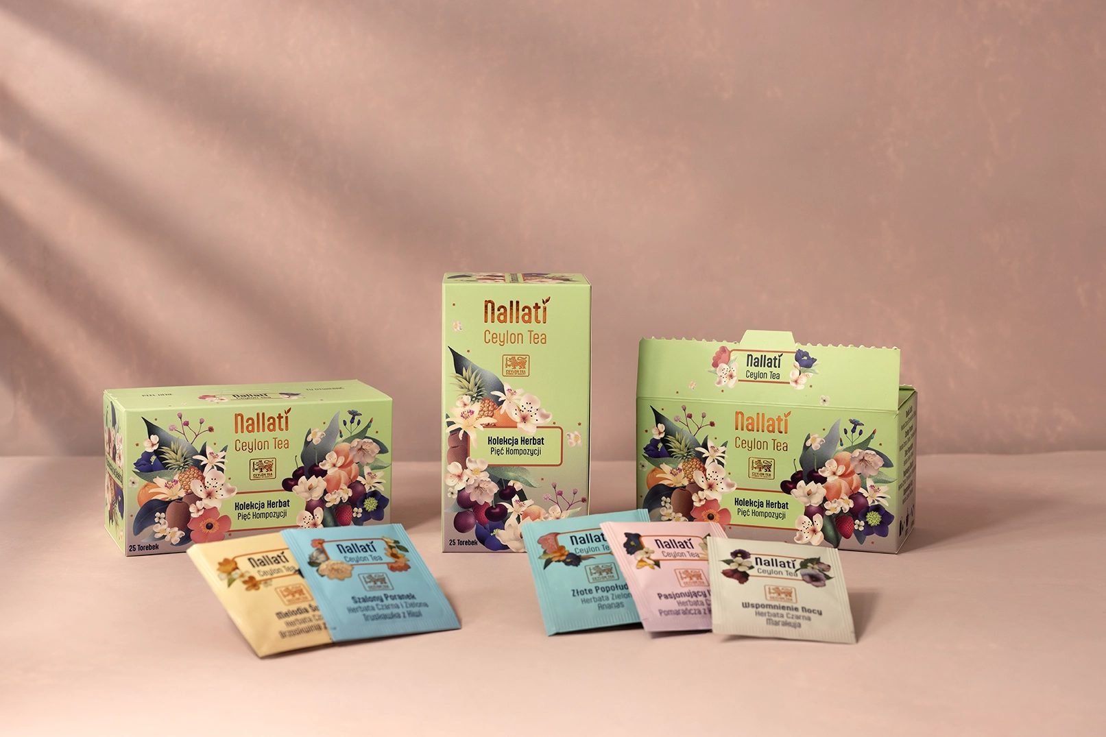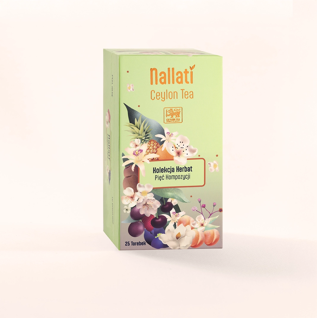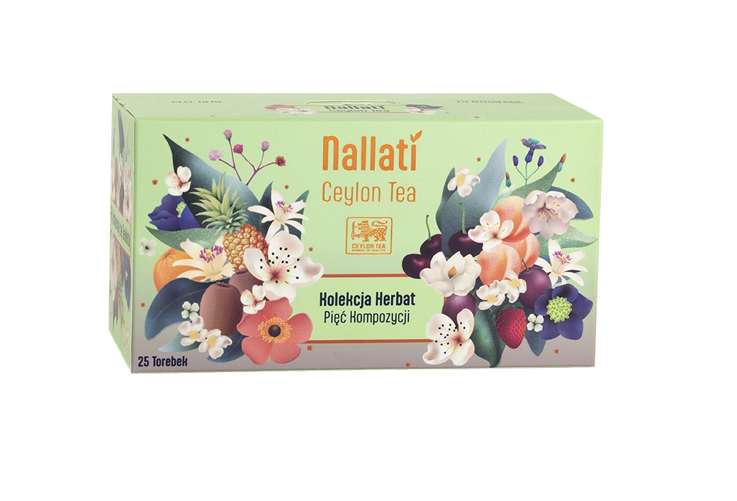 Herbaty ekspresowe w pudełkach: 25 torebek x 1,5g. Pakowana po 5 saszetek każdego z 5 smaków.