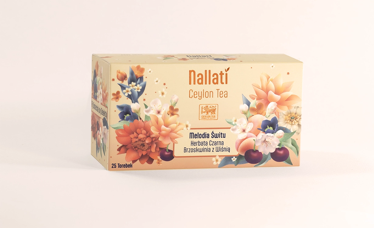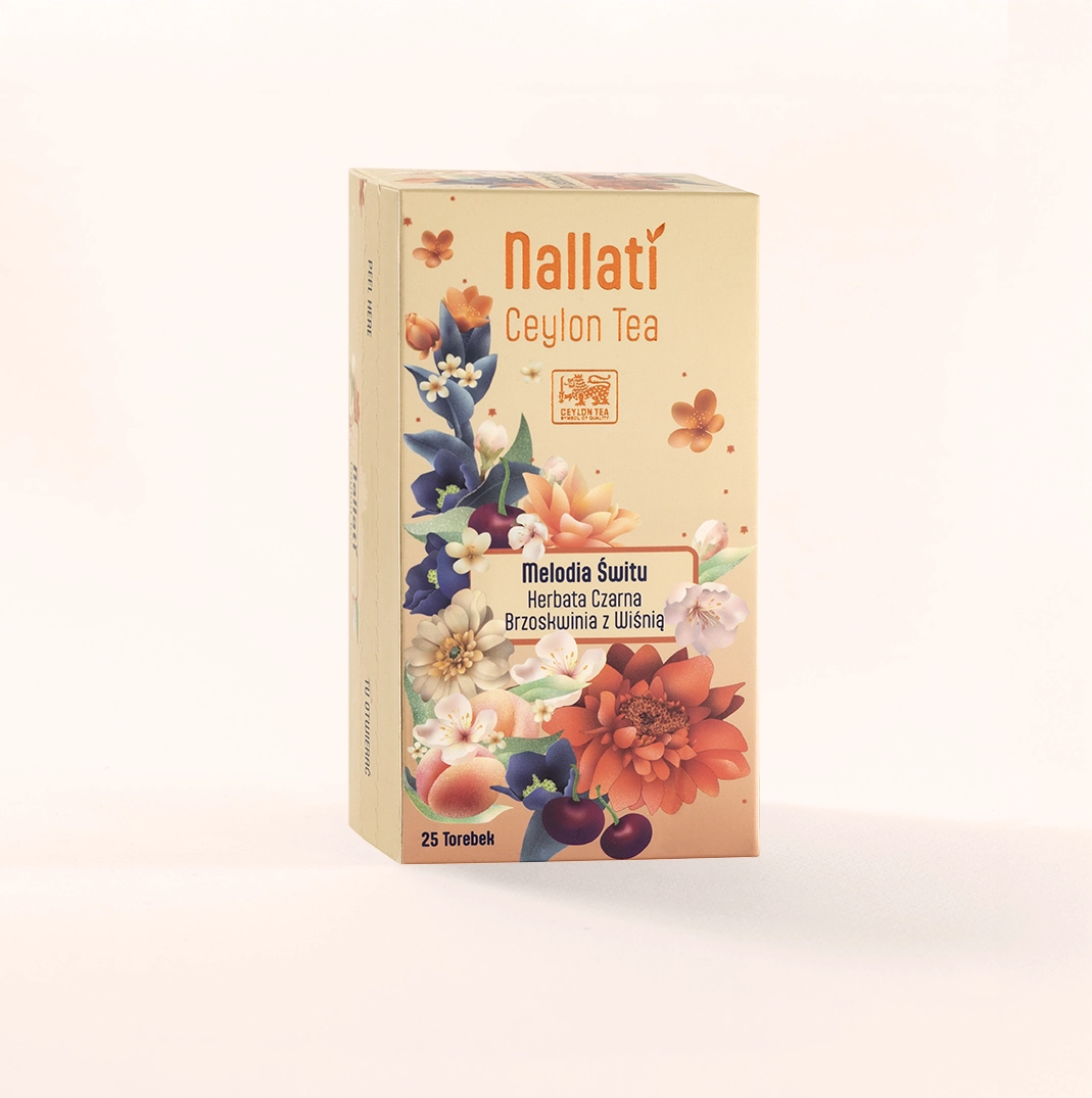 Składniki: Oryginalna cejlońska czarna herbata z aromatem brzoskwini i wiśni