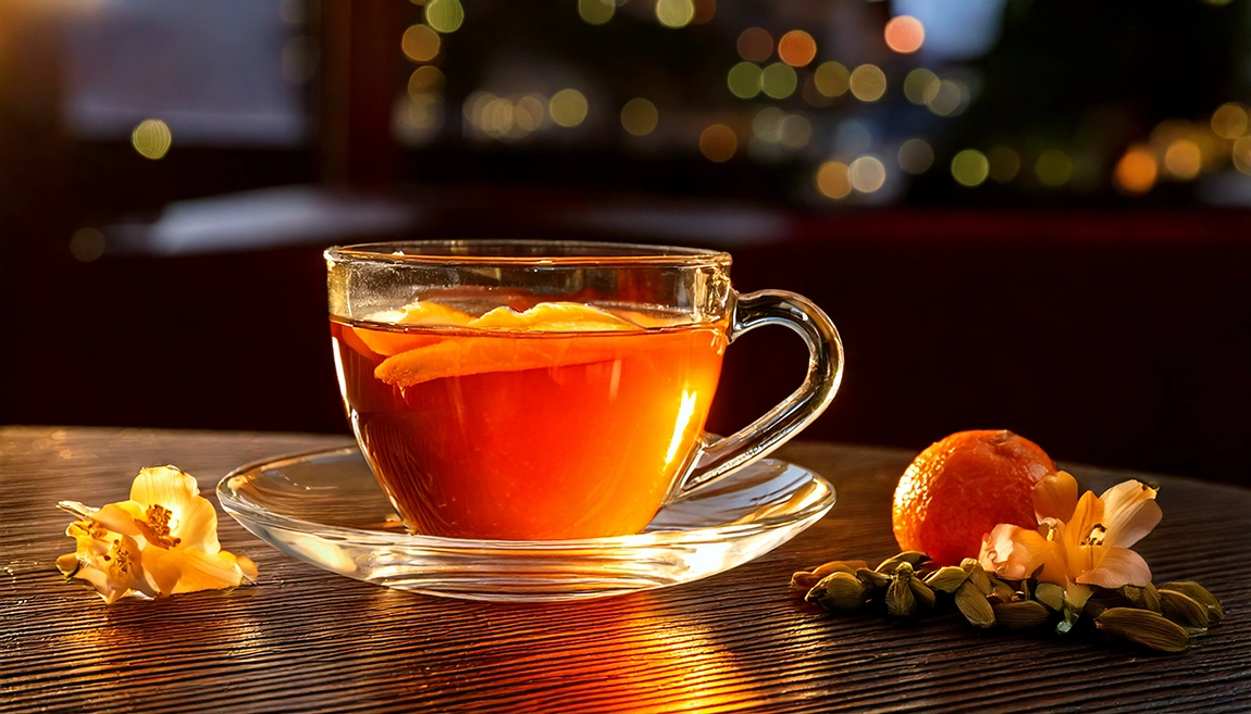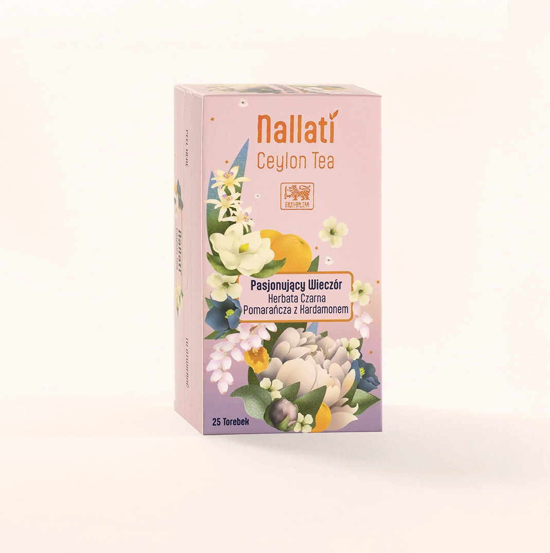 Składniki: Oryginalna cejlońska czarna herbata z aromatem pomarańczy i kardamonu